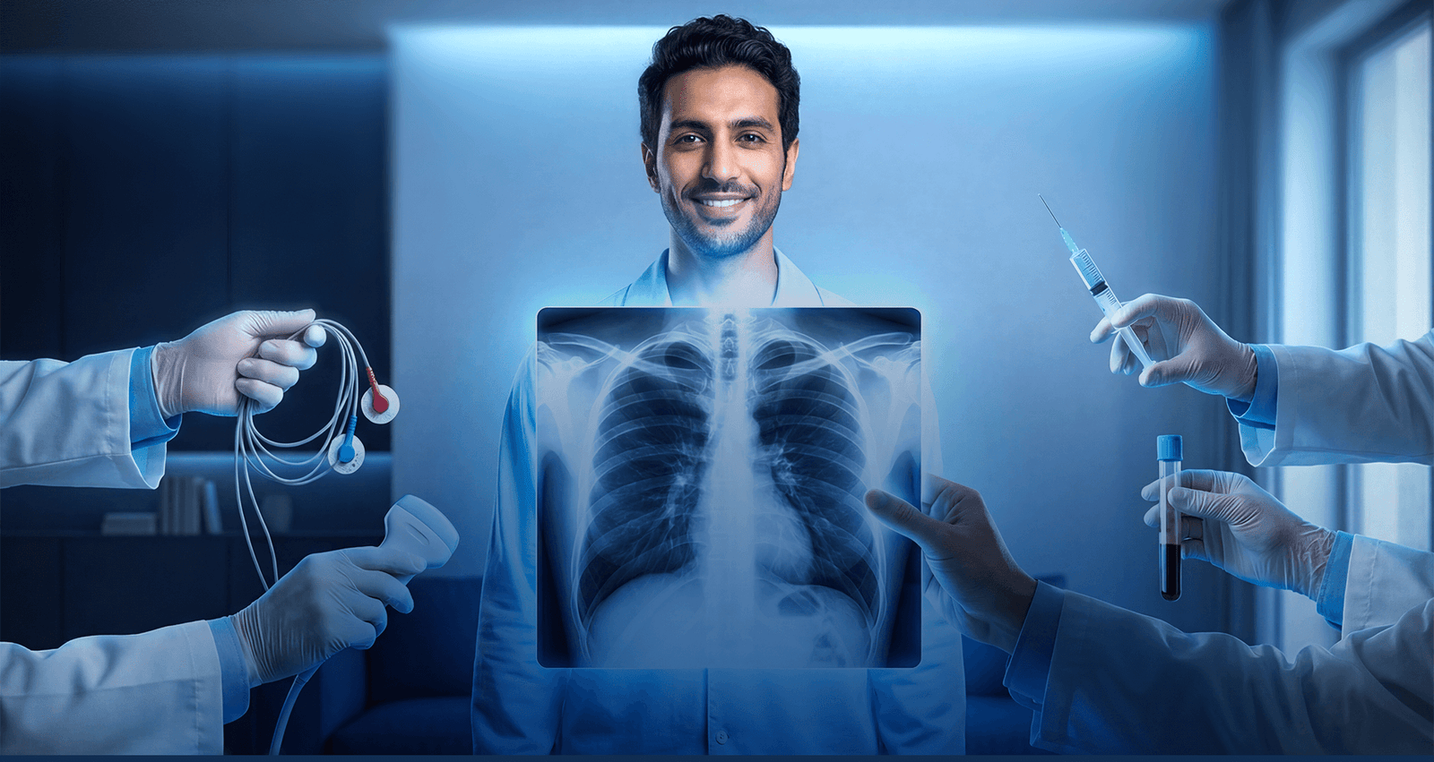هدفنا هو توفير فحوصات وأشعات وتحاليل طبية بأعلى مستوى من الجودة، باستخدام أحدث الأجهزة الطبية، دون حاجة المريض لمغادرة منزله.
