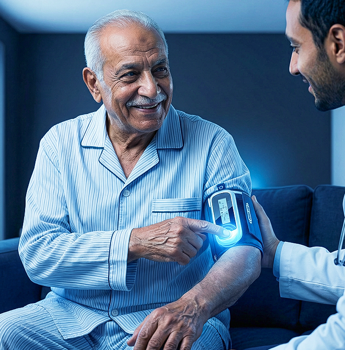نستخدم أحدث الأجهزة الطبية المحمولة المعتمدة لضمان دقة الفحوصات وسلامة المرضى داخل منازلهم.